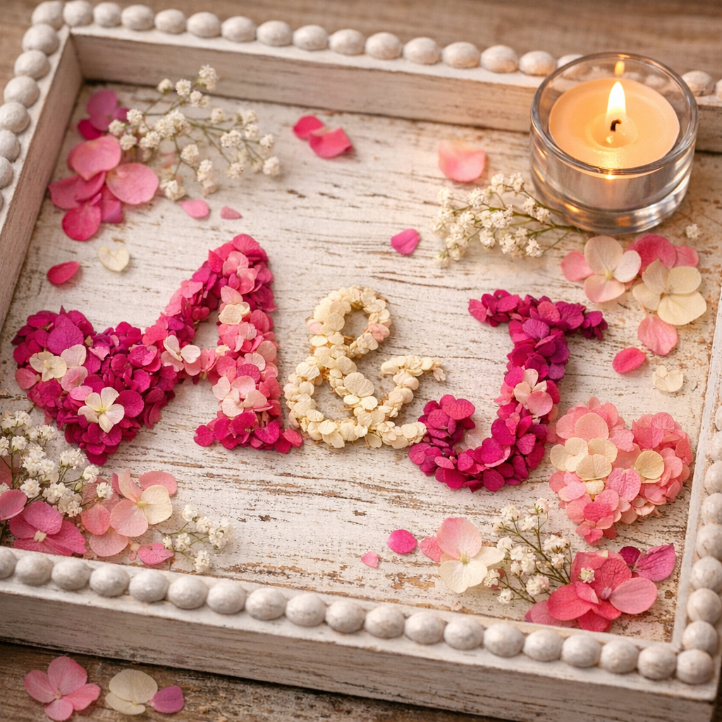 Petals can form hearts when placed just right. Initials appear softly through careful positioning of each piece. Patterns emerge where colors meet in quiet design.